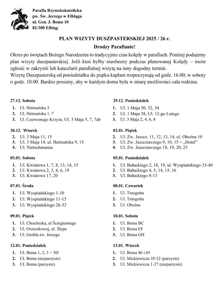 PLAN WIZYTY DUSZPASTERSKIEJ 2025/2026 r.